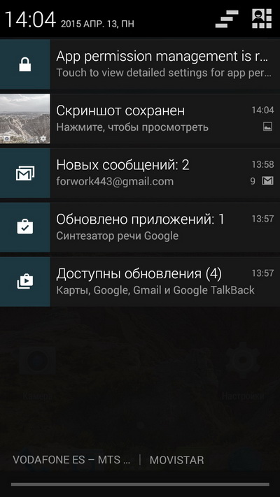 В рекламе этого телефона везде говорится о том, что здесь используется операционная система Android 5.0 Lollipop, однако она для него еще не выпущена: в моем экземпляре была установлена Android 4.4.4 и при попытке обновления мне сообщалось, что обновление не требуется, так как система - самая новейшая.