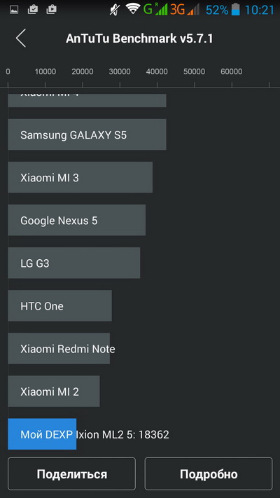 Какие выводы? В общем и целом мне смартфон очень понравился. За такие деньги получить устройство, вполне подходящее практически для всех задач, для которых обычно используют смартфоны, при этом еще и с реально емкой батареей в 5200 мА·ч, которая позволяет использовать устройство до трех дней без заряда и под хорошей нагрузкой, - это, на мой взгляд, просто здорово. Да, тот же Lenovo P70 имеет более современный чипсет, но у него менее емкая батарея (4000 мА·ч), да и стоит P70 аж 19 тысяч, а DEXP Ixion ML2 5" - 8990 рублей.