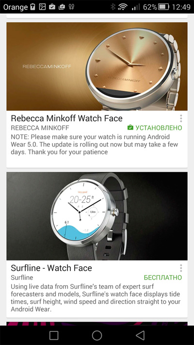 Циферблатов и по умолчанию поставляется немало, также с помощью приложения Google Wear вы можете скачивать самые разнообразные виды циферблатов через Google Play.