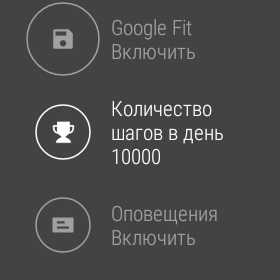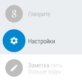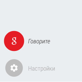 Тап по циферблату вызывает пиктограммы меню, где автоматически активируется голосовой сервис Google. Также этот голосовой сервис без всякого тапа вызывается командой "ОК, Google".