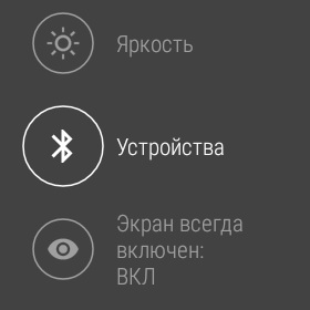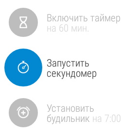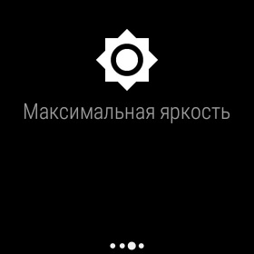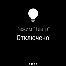 При смахивании циферблата вниз появляются крупные окна быстрых настроек. Жестами смахивания они переключаются по горизонтали.