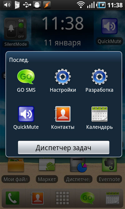 В Android для комфортного управления предусмотрены как минимум три клавиши: "Меню", "Домой", "Возврат". Причем каждая из них также работает в двух режимах: короткое нажатие и длинное. Например, длинное нажатие на "Домой" обычно вызывает список последних запущенных программ.