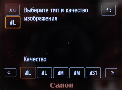 Быстрое меню. Для данного автоматического режима - выбор качества изображения и вида фокусировки.