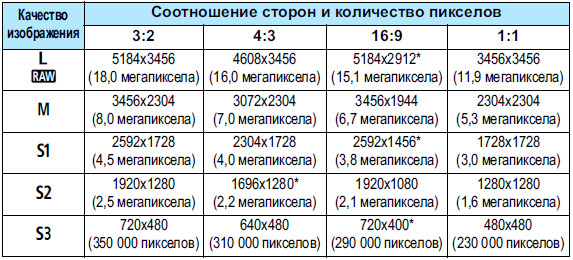 Здесь поддерживаются следующие варианты качества изображения и соотношения сторон.