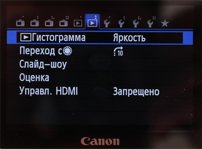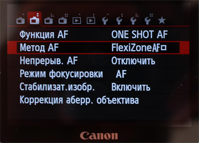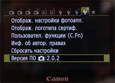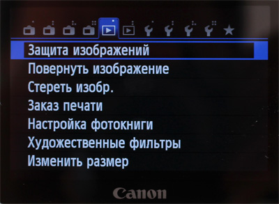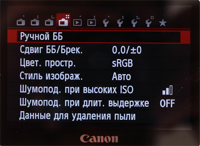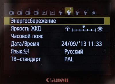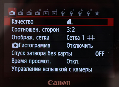 Общее меню фотоаппарата здесь почти такое же, как в зеркальных камерах серии EOS, - с некоторыми изменениями и дополнениями, конечно.