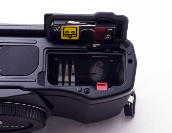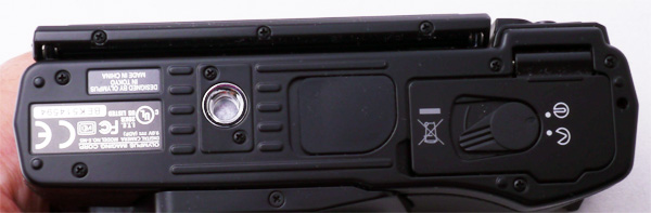 Нижняя часть фотоаппарата. Справа - отсек с защелкой, под которым находится аккумулятор.