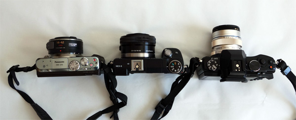 Ну и вот фотоаппарат с этим объективом в сравнении с Sony NEX-6 и Lumix GF6.