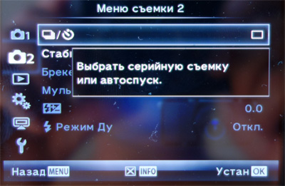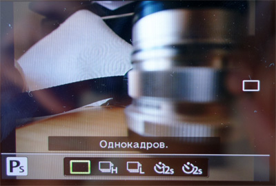 Курсор вниз - выбор режима съемки: один кадр, серийная, с задержкой и так далее.