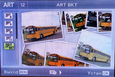 Режим Art - различные виды постобработки кадра, причем некоторые из режимов имеют по несколько вариантов фильтра.