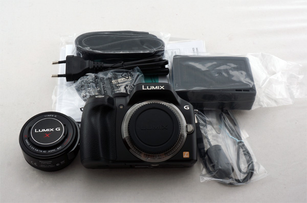 В комплекте: камера, объектив, блок зарядки аккумулятора с адаптером, ремешок, USB-кабель, диск с программным обеспечением, документация.