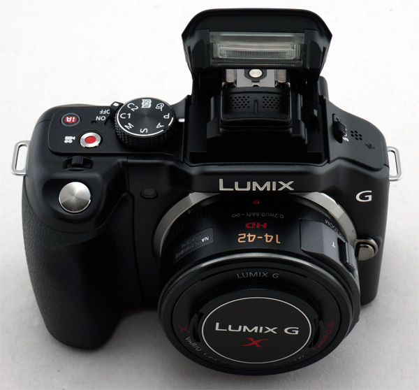 Объектив, конечно, сверхкомпактный. С диапазоном 14-42 (эквивалент 28-84), а выглядит как классический фикс-"блинчик". (Впрочем, у Sony NEX-6 китовый SEL1650 с эквивалентом 24-75 по размеру почти такой же.) При включении часть объектива выезжает вперед, и он становится где-то в два раза длиннее.