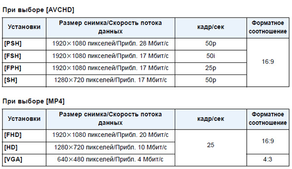 Видео - AVCHD, AVC/H.264, MPEG4, 1920x1080, 60 кадров/с