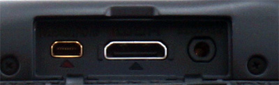 Под заглушкой справа - комбинированный порт USB/AV, miniHDMI (кабеля в комплекте нет), порт для тросика удаленного управления.