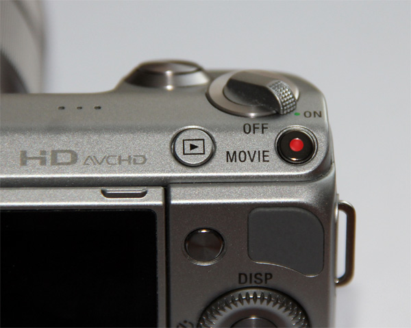 У меня NEX-3, кнопка записи видео расположена так же. Не мешает. Вот честно. Ни разу за год не промахнулся. За то мгновенный переход на запись видео выручал несколько раз. Особенно на школьных праздниках у ребенка.