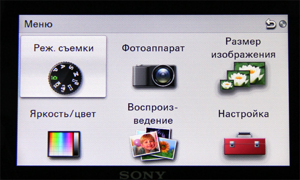 Меню фотоаппарата выглядит следующим образом.