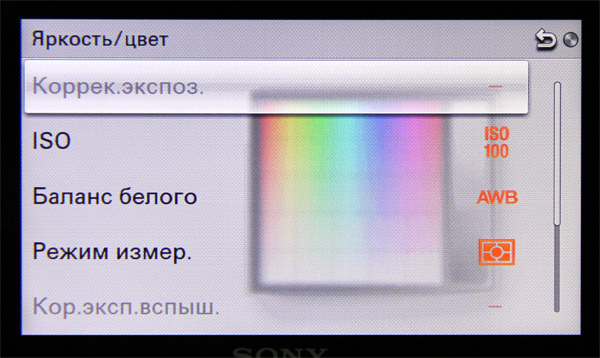 Для автоматических режимов кнопкой "ОК" вызывается корректировка соотношения выдержка - диафрагма (зубчатым колесом регулируется диафрагма для увеличения глубины резкости), регулировка яркости, цветности (теплый и холодный оттенки), интенсивности цветов, задание всяких спецэффектов.