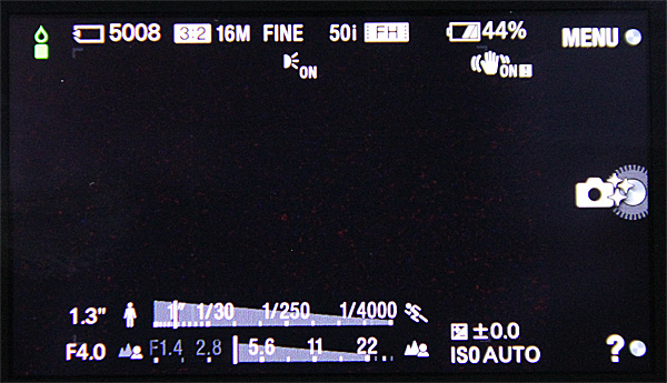Кстати, сенсорный дисплей - совершенно позорный. На черта его вообще сделали сенсорным - совершенно непонятно, потому что практически единственные пиктограммы, которыми можно управлять пальцем, - это пиктограмма "Возврат" на дисплее и пиктограмма нижней клавиши. И то это дублируется обычными клавишами. Ну и еще пальцем можно указать конкретную точку для фокусировки - это единственное эффективное применение. Остальное все пальцами почти не управляется, при попытке пальцем ткнуть в какой-нибудь пункт меню часто появляется сообщение о том, что тут сенсор не поддерживается, ну и если сенсор вообще отключить в настройках - ничего практически не изменится, потому что все управляется кнопками. Как-то это не очень логично, на мой взгляд. Уж если делаешь сенсорный дисплей, то сделай так, чтобы настройками реально можно было управлять пальцами. Если бы пиктограммы настроек на дисплее были кликабельными и там можно было выставлять нужные параметры - управляемость улучшилась бы на порядок.