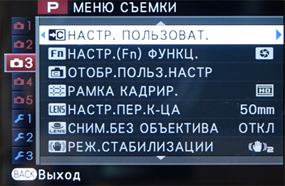 Как я понял, настроить тут можно только кнопку Fn, на которую навешивается одна из 14 функций. (Одна из них, например, просмотр глубины резкости, потому что здесь нет отдельной кнопки, закрывающей диафрагму на соответствующее значение.)