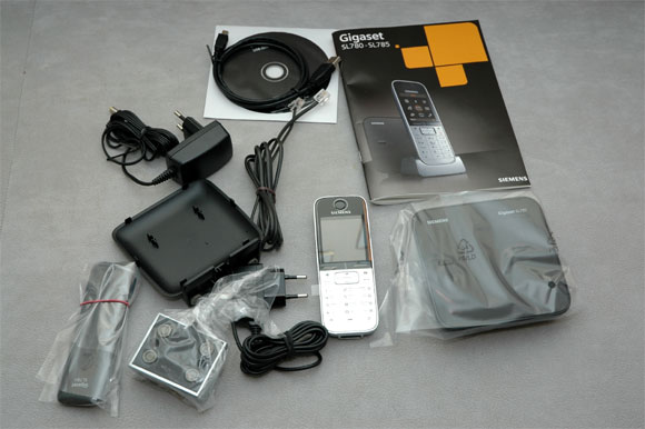 Итак, Siemens SL785 - DECT-аппарат с автоответчиком. В комплект входят: трубка, крэдл для зарядки трубки, базовый блок с автоответчиком, питание базового блока, телефонный провод, провод USB-miniUSB, программное обеспечение, инструкция.