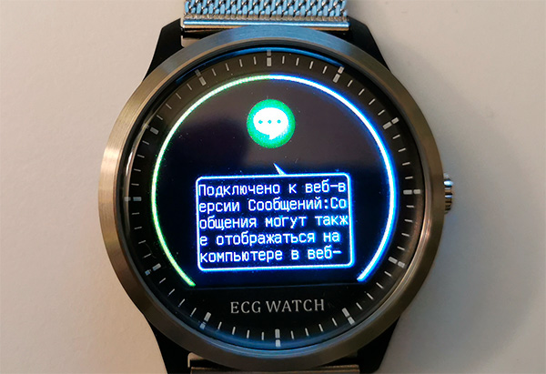 Уведомления (в том числе и на русском) часы выдают вот в таком виде. Пользоваться вполне можно, однако если вы используете приложения Whatsapp для ПК, то часы замучают уведомлениями о том, что приложение запущено и используется.