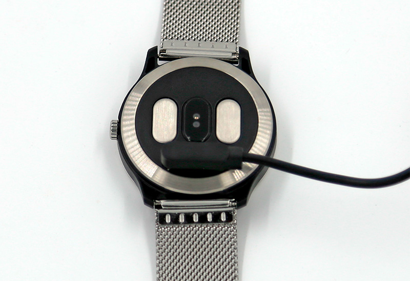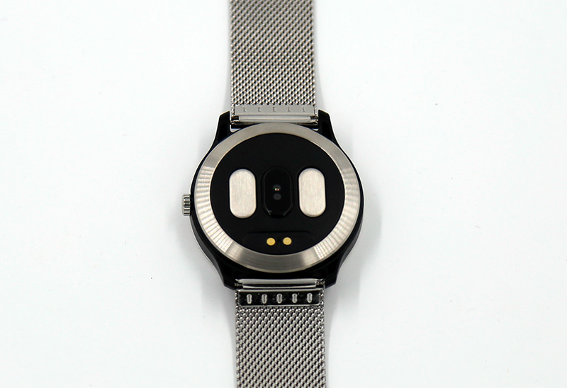 На задней части: контакты для зарядки, датчик пульса и два электрода - типа как для снятия ЭКГ - ну прям все как у взрослых!