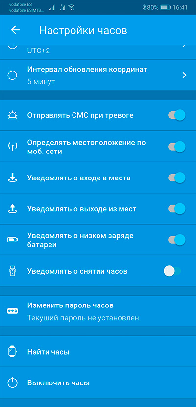 Очень удобная штука - датчик нахождения на руке: я всегда вижу, когда ребенок по каким-то причинам часы не надел, это важная информация.