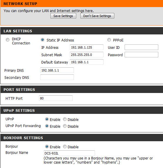В разделе Setup - Network Setup имеет смысл задать статичный IP для камеры - так ее будет проще настраивать при использовании сервера видеонаблюдений.