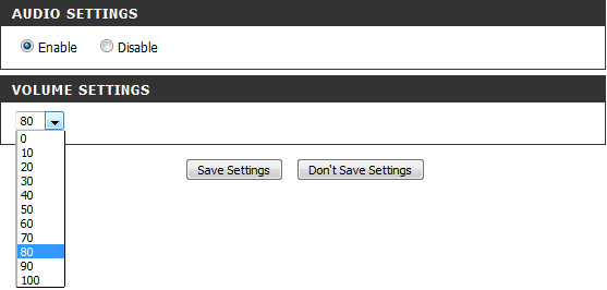 Audio Settings - можно включать/отключать передачу аудио и задавать параметры громкости.