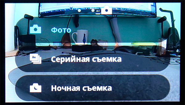 Свайпом по экрану переключаются режимы съёмки.