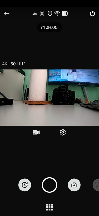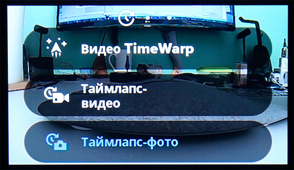 Фото, видео, таймлапс. Тут также доступен режим прямой трансляции в Facebook, Youtube и другие сервисы, причем кнопка эта в ряду режимов почти не видна (она почти скрыта за экраном), так что мне пришлось рыться в документации, чтобы понять, где это вообще.