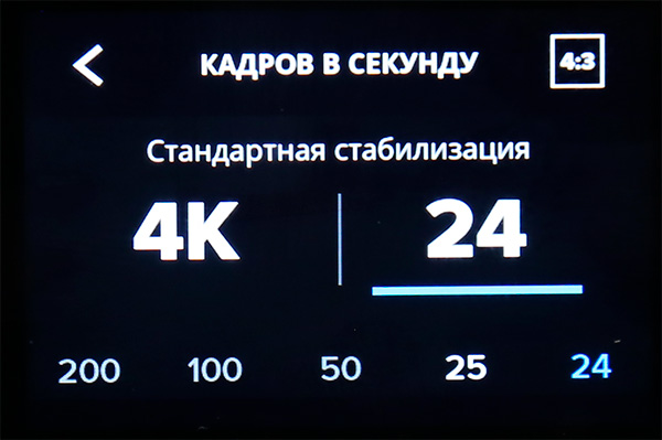 Для 4:3 стандартная стабилизация доступна при 4К 24 fps.