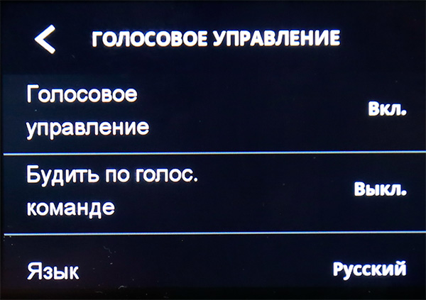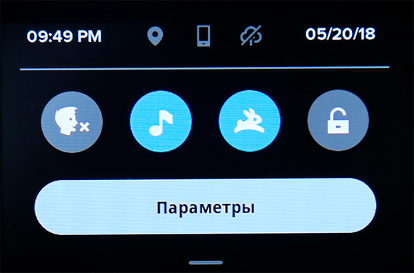 Сверху показаны различные данные, пиктограммы ниже: голосовое управление, звуковые сигналы камеры, QuikCapture (одной кнопкой камера включается и начинает съемку), блокировка настроек.
