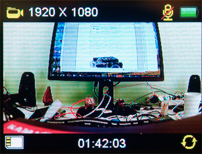От полностью заряженного аккумулятора на максимальном разрешении камера работает примерно час. Таким образом, если заранее зарядить запасной аккумулятор, то заряда хватит на два часа автономной работы: как правило, этого вполне достаточно.