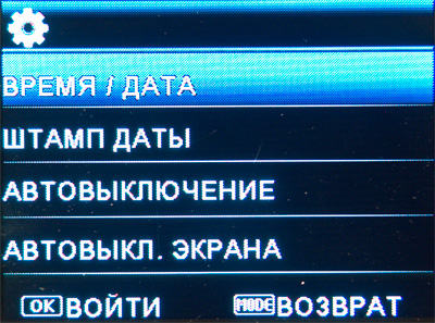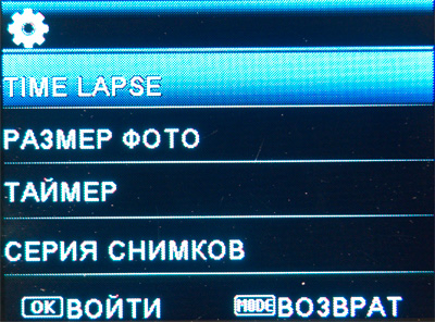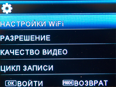 Настроек тут не особенно много, но есть все необходимое для режимов работы вкачестве видеорегистратора и экшн-камеры.