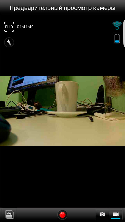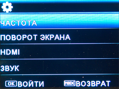 Кнопка "Стрелка вниз" при нажатии в режиме готовности съемки выводит меню настроек. (Нажатием ее во время съемки видео производится съемка фото.)