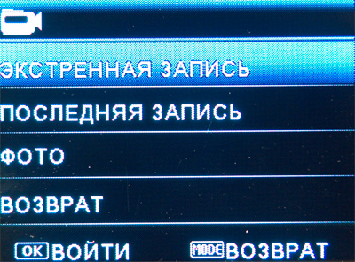 Коротким нажатием кнопки Power/Mode переключаются: запись видео, запись фото, просмотр записей.