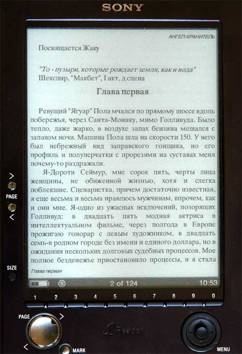 Слева расположены кнопка Size, позволяющая выбирать размер шрифта, и еще две кнопки листания страниц вперед и назад - для тех, кому неудобно пользоваться круглой кнопкой или джойстиком снизу.