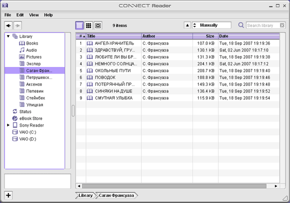 Программа Connect для закачивания книг неудобная и глючная. В Vista вообще не работает.