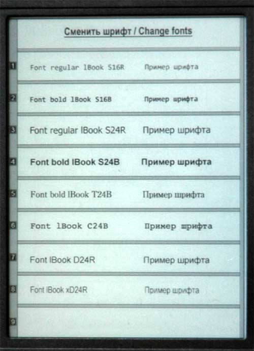 Восемь вариантов шрифтов для TXT- и HTM-форматов.