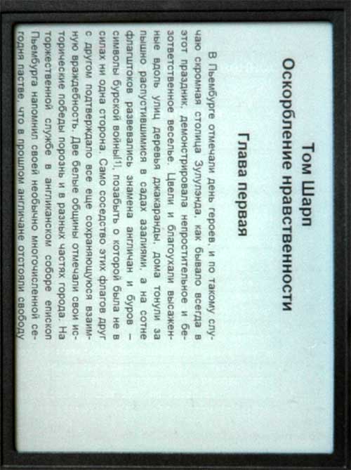 Так как экран не светится и его размер очень похож на обычный лист книги формата А5, возникает полное ощущение, что читаешь обычную книгу. Только страницы переворачивать значительно удобнее.