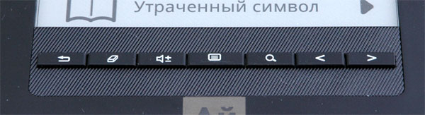 Несмотря на то что устройство имеет сенсорный дисплей, предназначенный для управления пальцами, ридер снабжен аж семью кнопками, расположенными в нижней лицевой части корпуса. Кнопки следующие: возврат, домой, звук, меню, поиск, страница влево, страница вправо.