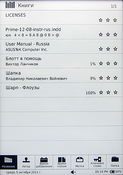 Ну и, конечно, просто поражает тот факт, что устройство не умеет разделять или хотя бы различать книги по форматам - это совсем неудобно.