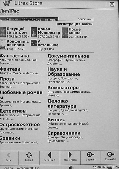 Я вошел со своими данными - выдала список моих книг, можно было покупать и скачивать из магазина что угодно. Вот это удобно.