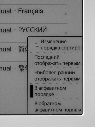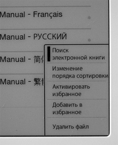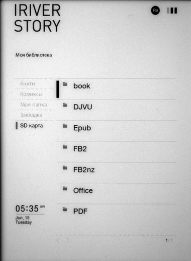По умолчанию выдается список книг в памяти устройства. Что неприятно, папки ридер понимает, но файлы из всех папок выдает скопом, так что потом замучаешься искать нужную книгу.