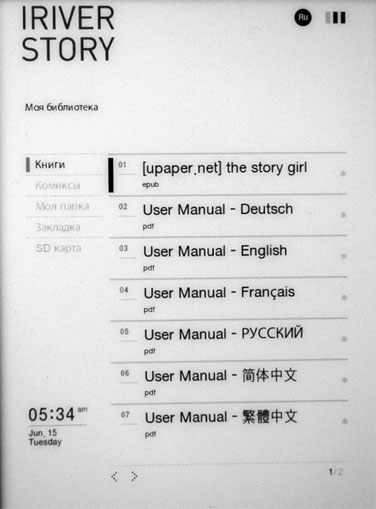 Теперь - немного сухих технических подробностей. Iriver Story - шестидюймовый электронный ридер на бумаге VizPlex второго поколения.