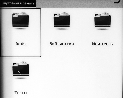 Мы долго тянуть не будем, пойдем сразу книжечки читать - то есть отправляемся во внутреннюю память. Там - папки с файлами.
