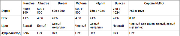 По поводу версии "Капитан Немо" разработчик пишет, что это, цитирую: "Единственная в мире электронная книга с "бумажным" экраном высокого разрешения, имеющая 8 Гб энергонезависимой памяти и сенсорный экран Multi-touch".