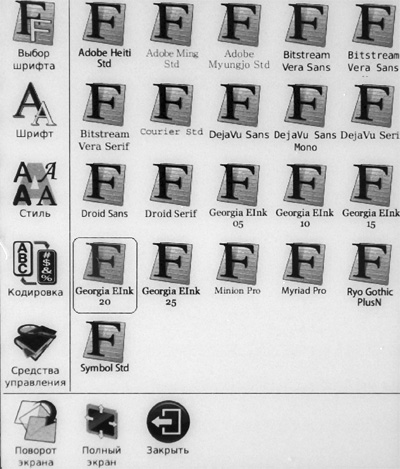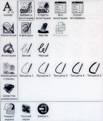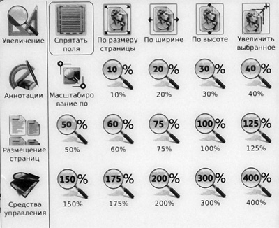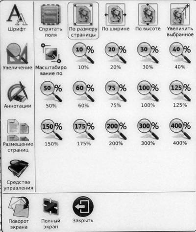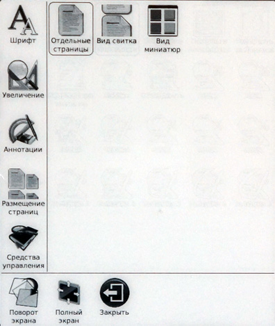 Меню и действия по меню - практически такие же, как и в случае с PDF, однако отсутствует режим масштабирования шрифта - это все-таки графика.