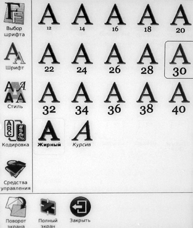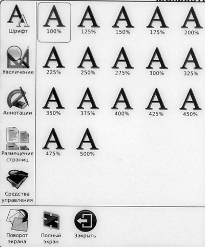 Вот так выглядит меню PDF. Первый пункт - размер шрифта.