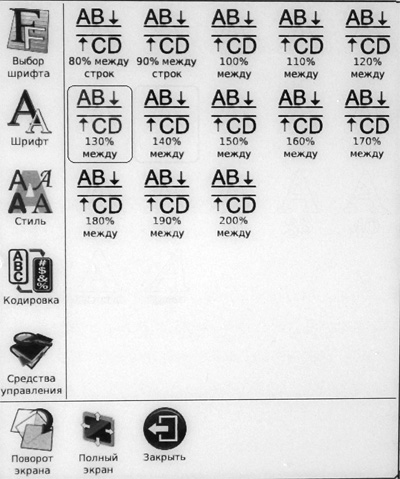 В разделе обновления экрана можно задать обновление не кажддый раз при листании, как по умолчанию, а каждые 3 страницы, 5, 7 и 9. Это экономит заряд аккумулятора, но чревато треками от предыдущих страниц на экране. Я обычно не вижу смысла тут экономить - аккумулятора все равно хватит хотя бы на пару тысяч перелистываний.